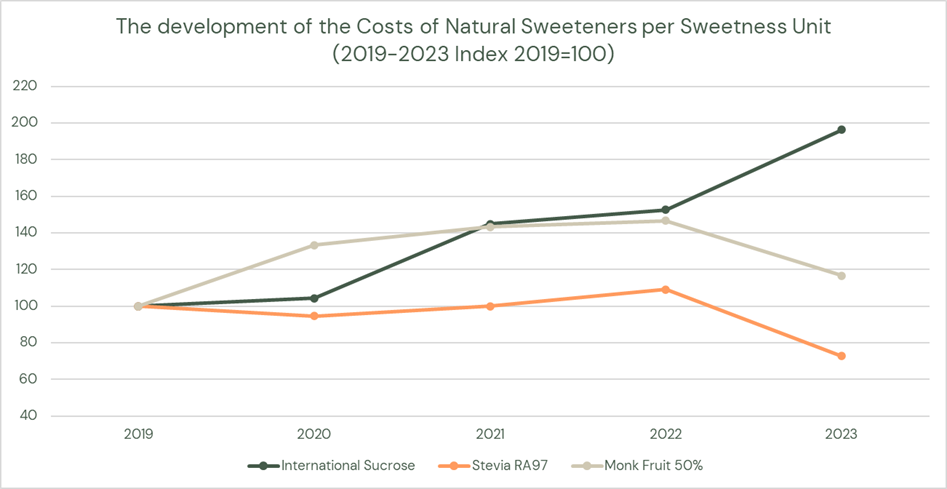 At this time of economic uncertainty and volatility, there is some welcome news for the food and beverage industry. Due to the agricultural science developments and the innovations in the sector, the price of stevia Reb A 97, the most popular stevia product, is becoming more and more affordable, and it is now an accessible option for manufacturers seeking to manage skyrocketing raw material costs.